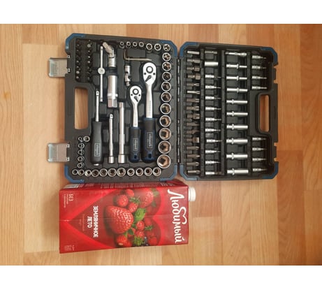 Очень хороший набор! Искал именно такой с головками и ключам, иногда все таки вручную тоже удобно с болтами работать. Все оправдало ожидания! Качество на высоте, кейс прочный и в меру жесткий, металл замки, в общем, все понравилось!