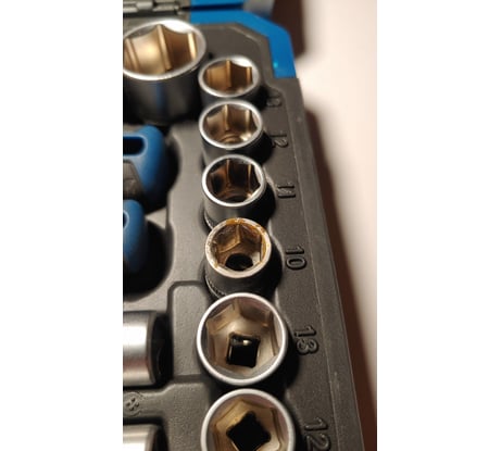 Набор покупал для автомобиля. Естественно хранится он в багажнике машины. За 2 месяца хранения почти весь металл зацвёл. Кейс при доставке ударили и одна пластиковая петля сломалась. Из-за этого кейс закрывается неплотно. Отказываться не стал, так как следующая дата поставки была через месяц, а инструмент уже был необходим. Сейчас цена набора практически удвоилась. Набор точно не стоит этих денег.