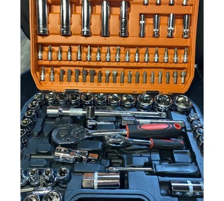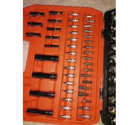 Купил как базовый набор в мастерскую — все ключи и биты аккуратно уложены, качество оправдало ожидания: не текут, не ломаются при обычной нагрузке. Чехол прочный, замки держат