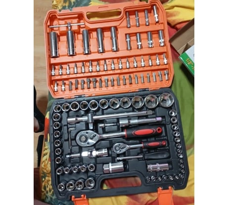 Удобно, что все инструменты собраны в одном месте - не нужно искать нужную головку по всему гаражу. Карданный шарнир и удлинители выручают при работе в сложных местах под капотом. Качество металла хорошее - за полгода использования никаких сколов и деформаций