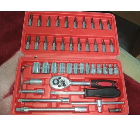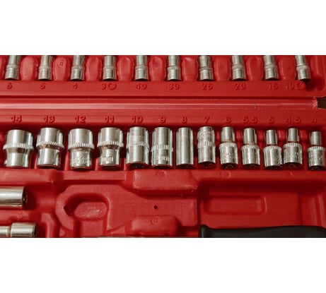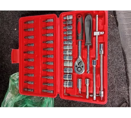 Головки и биты качественно сделаны, нет люфта при работе. Трещотка очень удобная, щелкает четко. Хранится все в компактном чемоданчике, который не занимает много места в шкафу