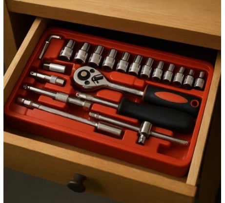 Купил, чтобы собрать базовый комплект для разных мелких домашних дел и ремонта. Очень удобный набор — все ключи, отвертки и насадки аккуратно лежат в кейсе. Инструменты крепкие, ручки удобные, пользоваться приятно. Часто что-то подкручиваю, теперь не нужно бегать искать нужную отвертку поотдельности.