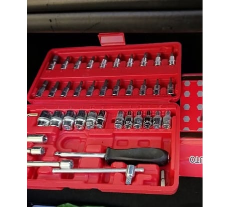 Вместительный пластиковый кейс обеспечивает идеальный порядок и удобство переноски. Головки и биты выполнены из добротной стали, не люфтят в патроне. Трещотка имеет удобный переключатель направления и малый радиус поворота