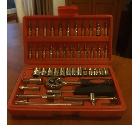 Купила этот набор для дома: иногда надо что-то приладить, починить, собрать мебель. Очень выручил, все инструменты аккуратно лежат в кейсе, ничего не потеряется. Инструменты крепкие, удобно держать в руках, есть даже нужные мелочи. Теперь не надо просить мужа помочь с гаечным ключом — сама быстро справляюсь.