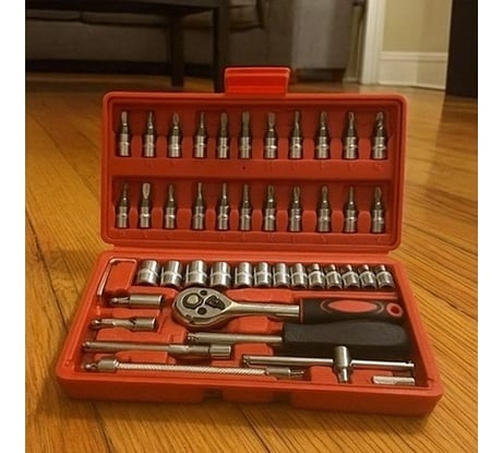 Купил этот набор для домашнего ремонта, потому что раньше постоянно искал разные инструменты по отдельности. Очень классный комплект — есть отвертки, ключи, головки — всё в одном кейсе, удобно хранить. Инструменты крепкие, рукоятки удобные, за несколько месяцев работы всё работает без проблем. Пользуюсь при ремонте мебели и бытовой техники — хватает с головой.