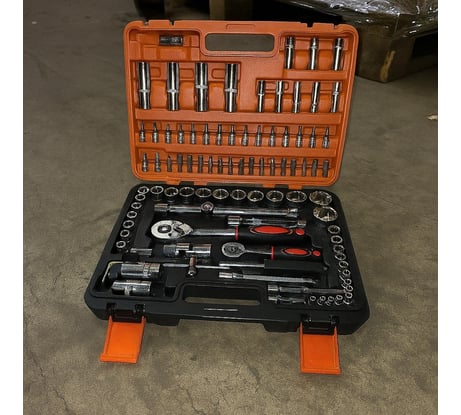 Купил для гаража — чтобы собрать большой универсальный комплект. Очень доволен: есть всё нужное — ключи, отвертки, головки разного размера. Кейс крепкий и компактный, удобно брать с собой.