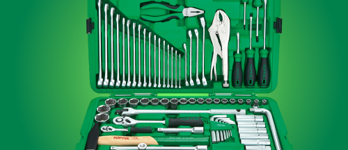 - Продуманный выбор В наборе есть трещотки, удлинители, торцевые головки, переходники, ключи комбинированные, биты и другие инструменты