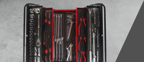 - Быстрый доступ Раздвижная конструкция кейса открывает обзор каждого из пяти лотков с инструментом