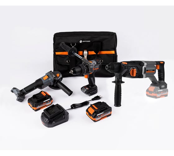 Профессиональный набор Anycons — это готовое решение для широкого спектра строительных задач, где все инструменты работают от совместимых аккумуляторов, обеспечивая непрерывный рабочий процесс.
