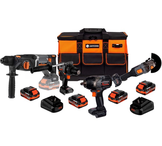 Надежный набор Anycons AC-ST408 состоит из четырех высококачественных, бесщеточных инструментов, которые станут незаменимыми не только для профессионалов строительной отросли, но и для ее любителей.