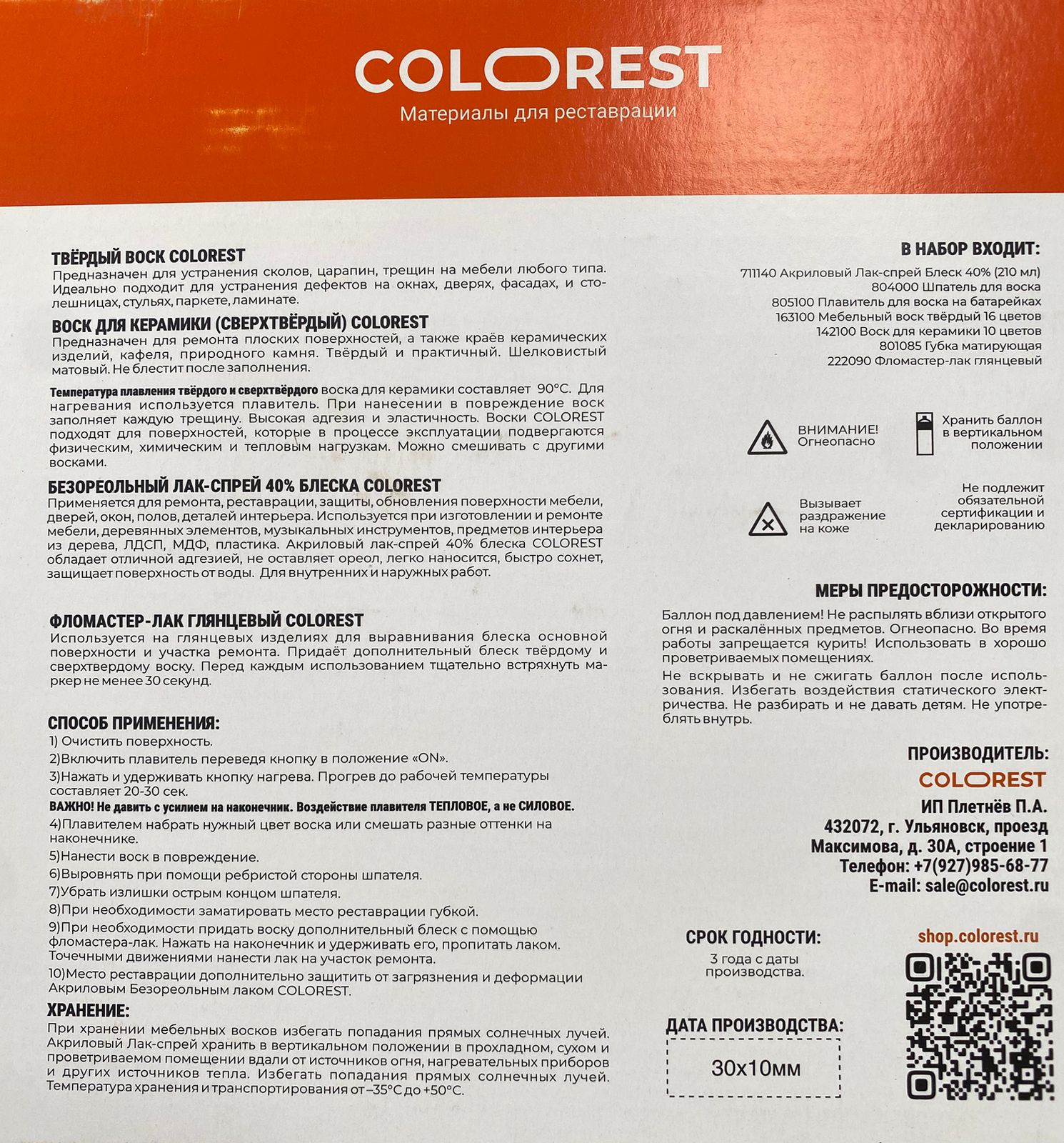 Тип:набор восков и инструментов для реставрации