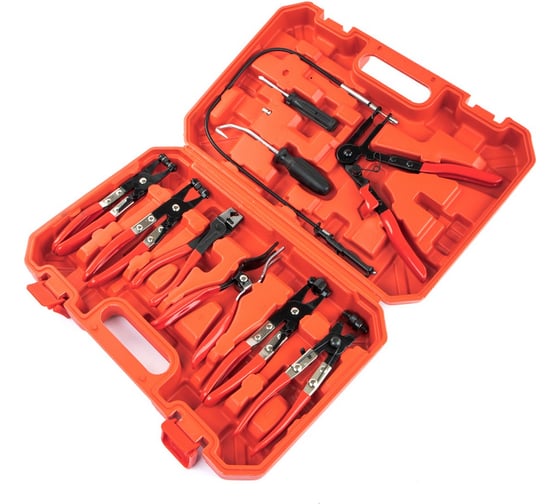 Универсальный набор специализированных клещей для легкой установки, затяжки и снятия пружинных (червячных), проволочных и пластиковых хомутов различных типоразмеров.