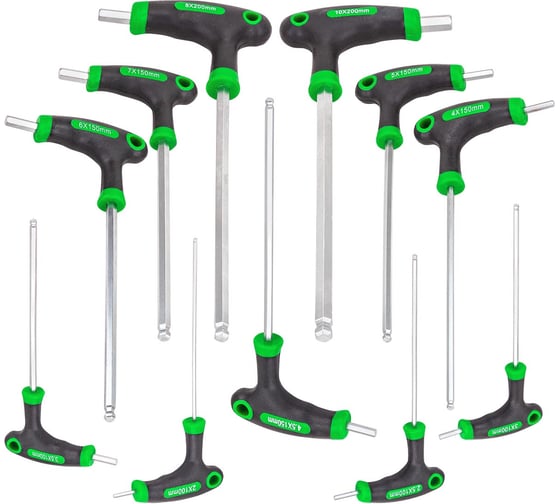 Разнообразие размеров: Набор включает ключи размером 2, 2.5, 3, 3.5, 4, 4.5, 5, 5.5, 6, 8 и 10 мм, что позволяет выбрать необходимый инструмент под конкретный крепеж.