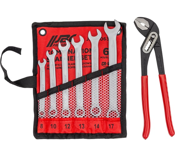 Набор комбинированных ключей от бренда JBC — это практичный комплект ручного инструмента, включающий рожково-накидные ключи, переставные пассатижи и полотно для хранения. Ключи выполнены из прочной хром-ванадиевой стали (CrV) с антикоррозийным покрытием, что обеспечивает долговечность и устойчивость к износу.