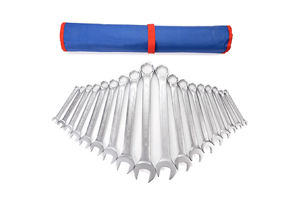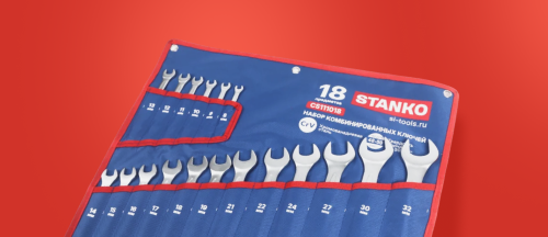 Финишная обработка Satint и хром никелевое покрытие комбинированного ключа обеспечивает надежную защиту от коррозии, а также надежный хват и препятствует выскальзыванию инструмента из рук. 12-гранный профиль накидной части подходит к головкам болтов и гайкам как 6-, так и 12-гранного профиля, и обеспечивает 5 градусный шаг перехвата. Специальный отгиб, в 15 градусов накидной части ключа позволит работать в местах с ограниченным доступом к крепежу и помогут подобраться к крепежу как с торца, так и с боку, в зависимости от места выполняемых работ. Ключи размещены в удобном чехле из ПВХ ткани оксфорд плотностью 1000 гр/м, размер в раскрытом виде 560х480х15 мм, каждое место размещения инструмента промаркировано, что обеспечивает простоту подбора необходимого ключа.