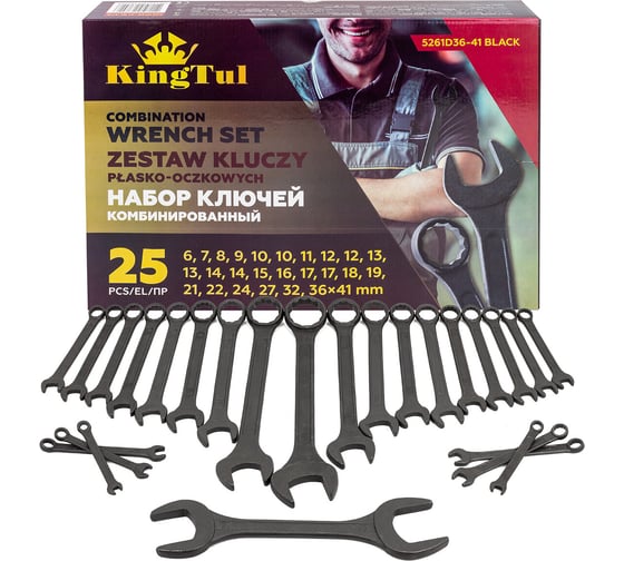 Набор ключей комбинированный KingTul 25 предметов KT-5261D36-41 BLACK(63965)