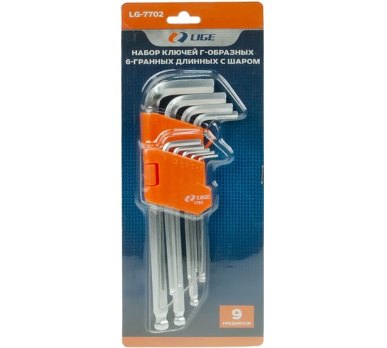 Набор ключей LIGE Г-образных 6-гранных длинных с шаром 9пр. LG-7702 184587