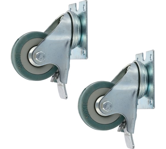 Набор колес 2шт./50мм, поворотные с тормозом и платформой (серая резина)