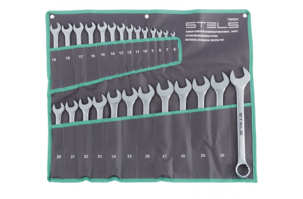 Набор Stels 15431 включает 26 комбинированных ключей из стали CrV, размером от 6 до 32 мм, покрытых матовым хромом, и используется для закручивания и откручивания гаечных и болтовых соединений. Накидная головка каждого ключа имеет 12-гранную внутреннюю поверхность, что облегчает работу с крепежом и уменьшает риск его повреждения. Ключи применяются в слесарных мастерских и автосервисах, а также будут полезны для решения бытовых задач.