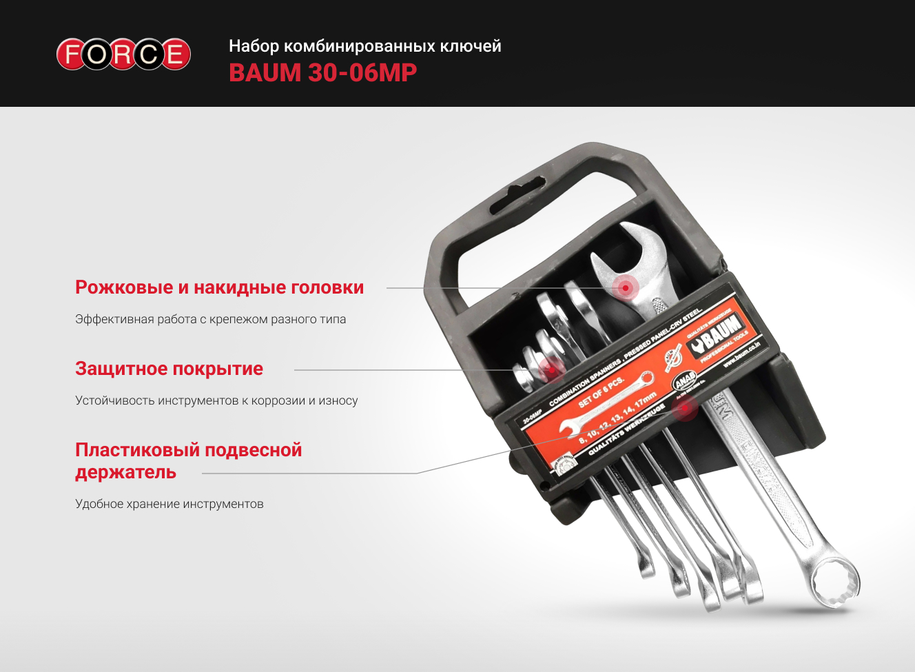 Технические характеристики набора комбинированных ключей BAUM 30-06MP