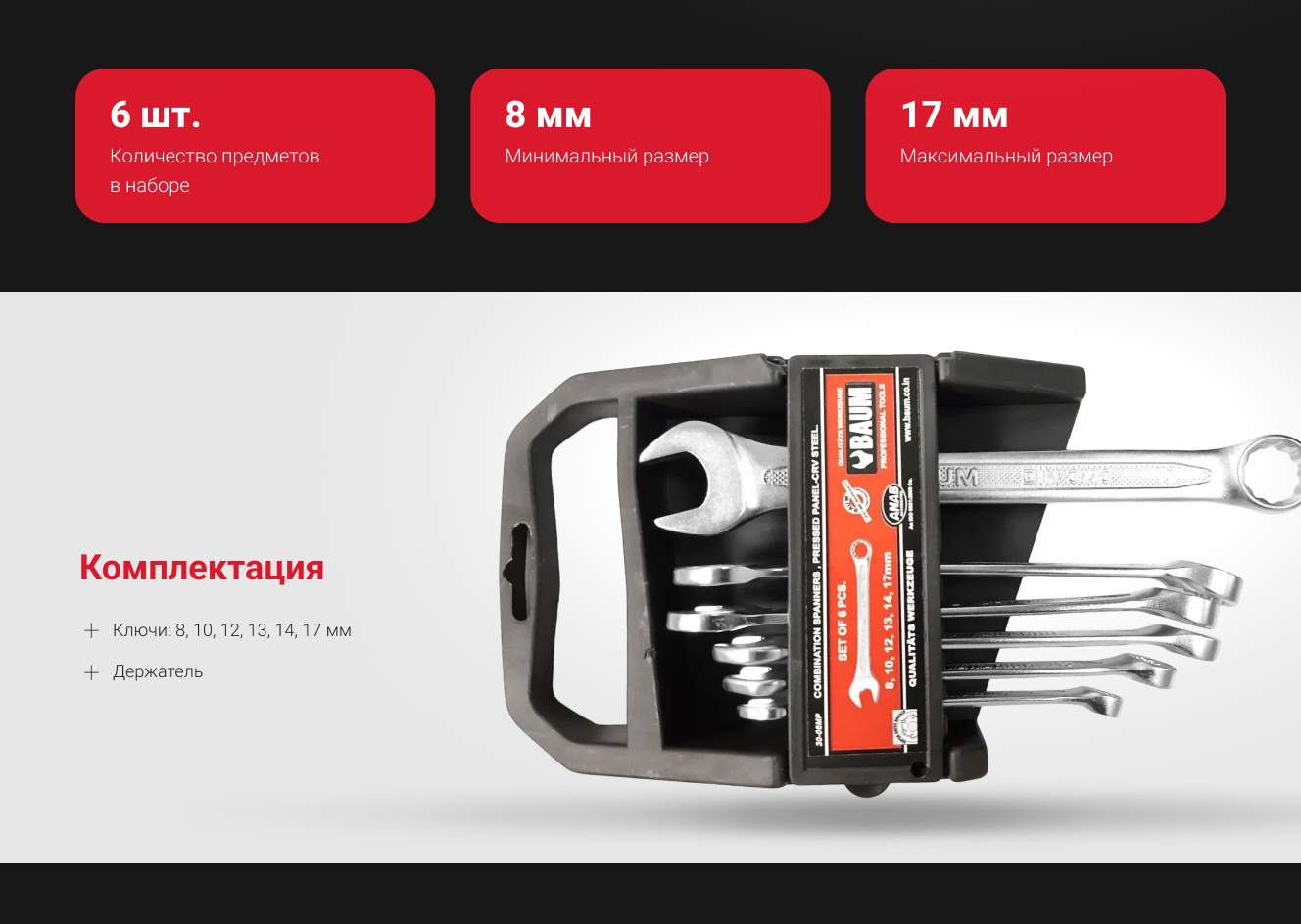Набор комбинированных ключей BAUM в пластиковом держателе, 6 предметов, 8мм -17мм 30-06MP