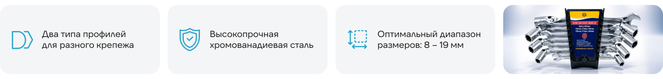 - Ключи: 8, 10, 12, 13, 14, 15, 17, 19 мм