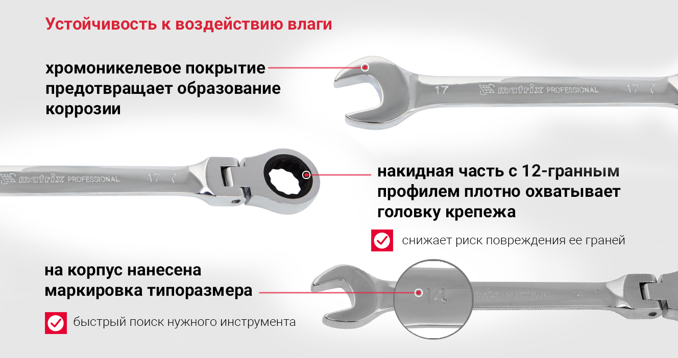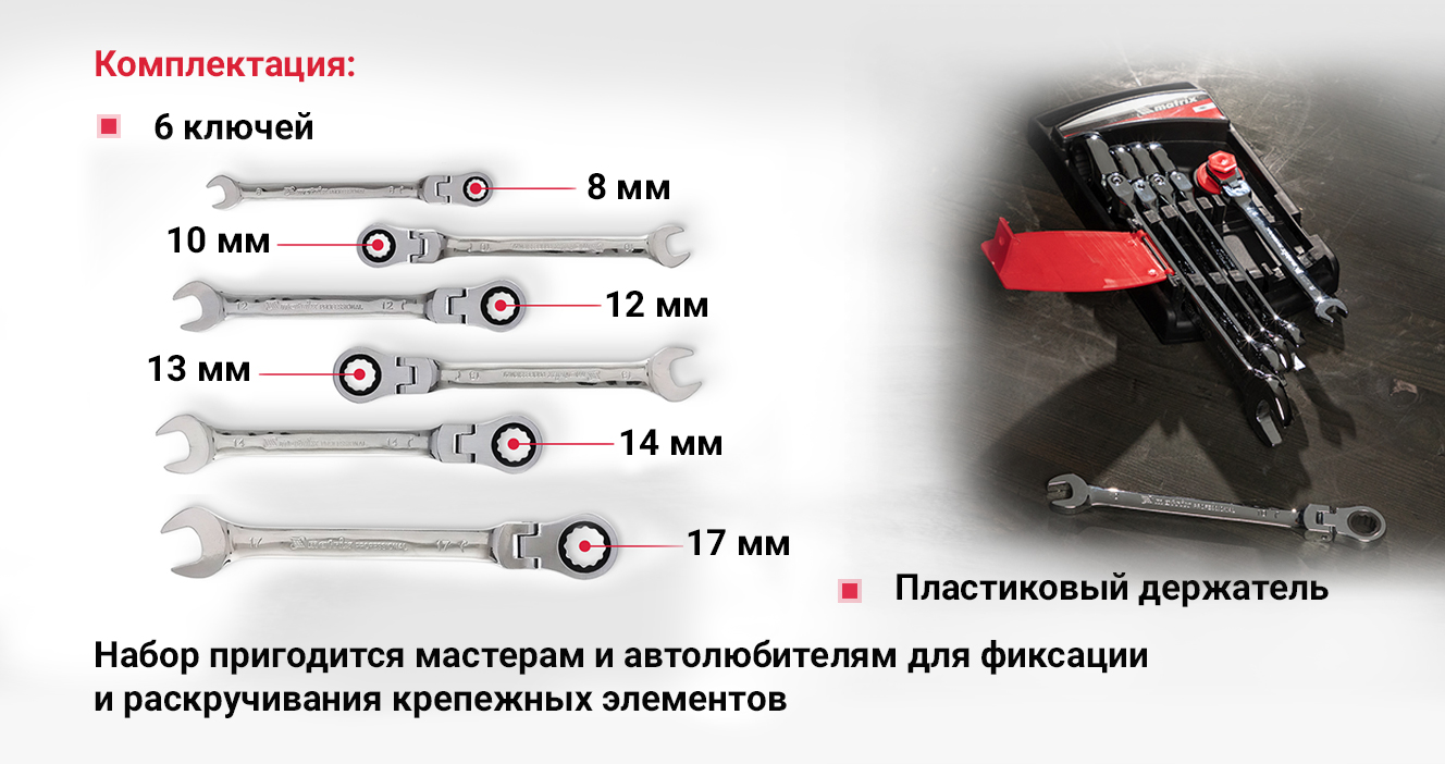 Сопутствующие товары для набора комбинированных трещоточных ключей MATRIX 14897
