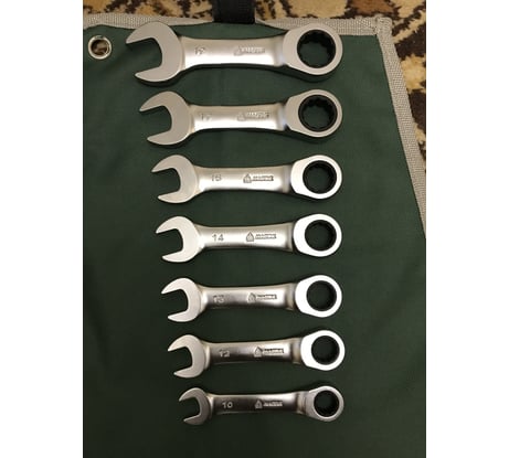 Набор комбинированных трещоточных укороченных ключей 10-19мм, 7шт МАСТАК 0215-07H