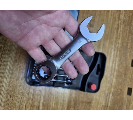 Очень дельный инструмент, но я бы поменял ассортимент на более ходовые позиции: 12, 13, 17, 19, 22. Восьмой и десятый ключи вообще здесь не нужны, потому что они и так маленькие. Простой ключ с трещоткой на 8 или на 10 стоит рублей 100-150...