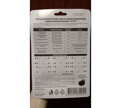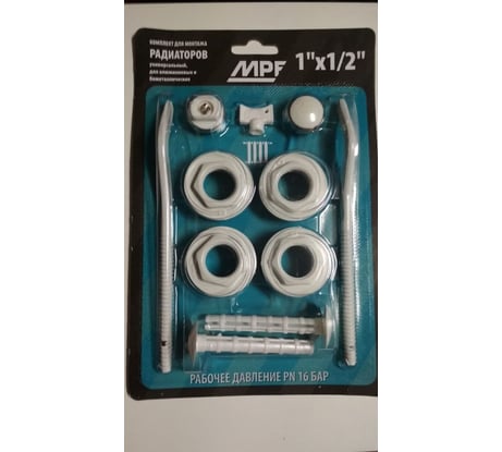 Набор комплектующих для установки радиатора с двумя кронштейнами 1"х1/2" MasterProf ИС.030068 - комплект из четырех переходников, заглушки, двух кронштейнов, крана маевского и ключа для крана маевского. Все резьбовые соединения снабжены прокладками.