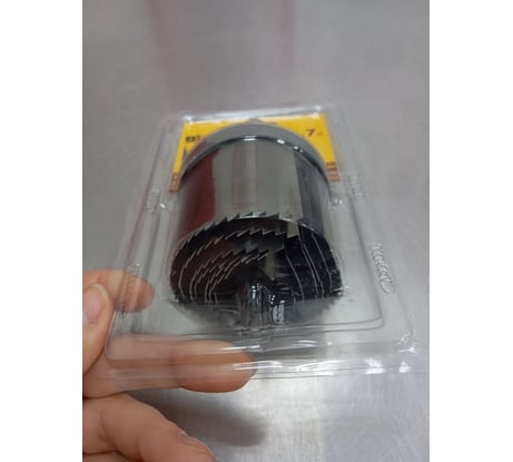 Сверло мягкое тут же погнулось, коронки тупые, на некоторых с новья отсутствуют зубья, кривые, на чашке не держатся. Не смог сделать ими ни одного отверстия. Набор в помойку.