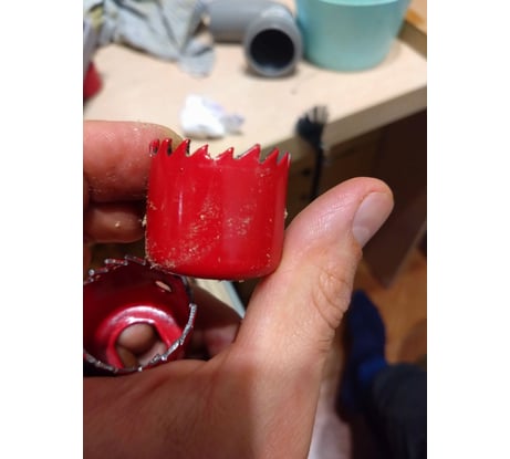 Взял из-за хороших отзывов. Нужно было просверлить пару отверстий самой большой коронкой 67 мм в дсп тумбы для выводов под раковиной. На втором отверстии посадочное место превратилось в круглое. Теперь нужно только очень сильно затягивать, иначе прокручивается.