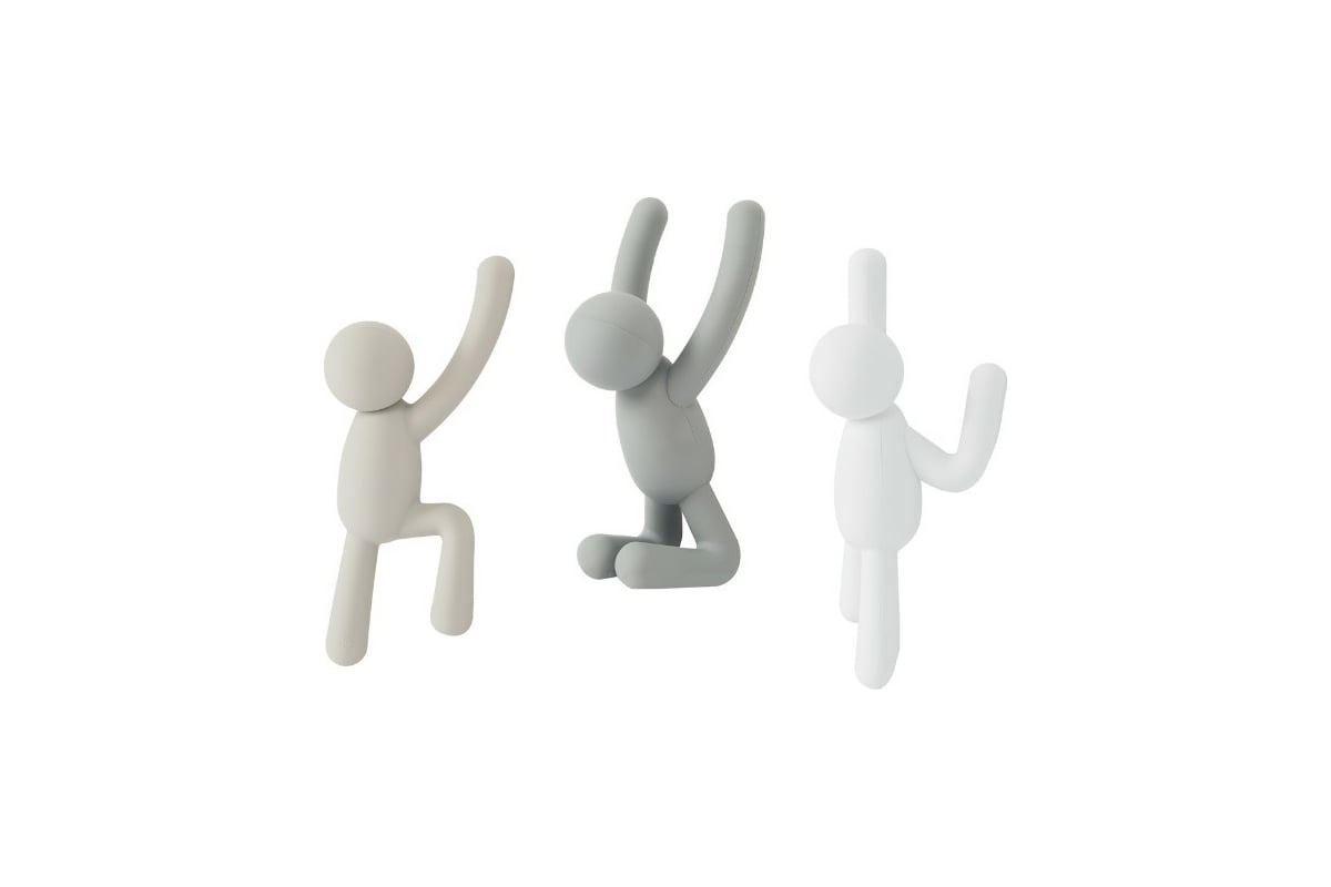 Набор крючков Umbra Buddy серый, 3 шт. 318165-023 выполнен в виде вскарабкивающихся вверх человечков, окрашенных в серые цвета. Этот стильный и в то же время минималистичный дизайн станет ярким украшением любого интерьера. Крючки могут использоваться и для хранения одежды в прихожей, и для прихваток или полотенец на кухне. Каждый крючок изготовлен из формованного полипропилена, а максимальная нагрузка на него составляет 2.3 кг. В комплекте 3 крючка.