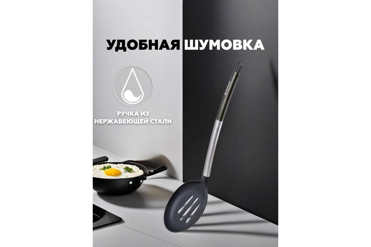 Набор кухонных аксессуаров Bergner 4 предмета половник, шумовка, лопатка, ложка, нержавеющая сталь, пластик, Midnight BG-39081-GR