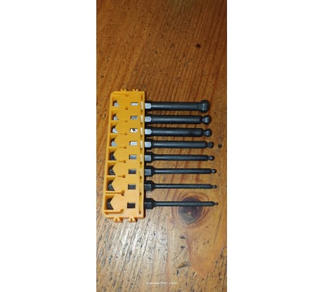 В состав набора входит 8 шестигранных бит со сферической головкой (НЕХ1.5, НЕХ2, НЕХ2.5, НЕХ3, НЕХ4, НЕХ5, НЕХ6, НЕХ8) с шестигранным хвостовиком. Набор предназначен для работы с различными соединениями с шестигранным шлицем. Сферическая головка позволяет работать под углом до 25 градусов и упрощает работу в труднодоступных местах, что делает процесс закручивания и откручивания гораздо более удобным. В наборе присутствуют биты различных размеров, что позволяет использовать их для работы с соединениями с шестигранными шлицами разных диаметров. Данные биты можно использовать в автомобильном ремонте, мебельном производстве, строительстве, ремонте бытовой техники и многих других областях, где необходимо работать с соединениями имеющими шестигранные шлицы. Биты выполнены из высокопрочной легированной стали S2, что обеспечивает повышенную износостойкость и увеличивает срок службы. Фосфатное покрытие бит повышает износостойкость, увеличивает твердость и защищает от коррозии, что позволяет сохранять качество и внешний вид оснастки в первоначальном виде в течение долгого времени. Качественное исполнение набора позволяет рекомендовать его как опытным пользователям, так и любителям.
