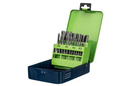 Набор метчиков Сибртех 77307 состоит из 21 предмета и предназначен для нарезания внутренней резьбы размером от М3 до М12 в сквозных и глухих отверстиях металлических и стальных деталей. Подойдет для использования в слесарной мастерской, автосервисе, дома или на даче. Набор поставляется в металлическом кейсе, благодаря которому инструменты не потеряются при хранении или перевозке.