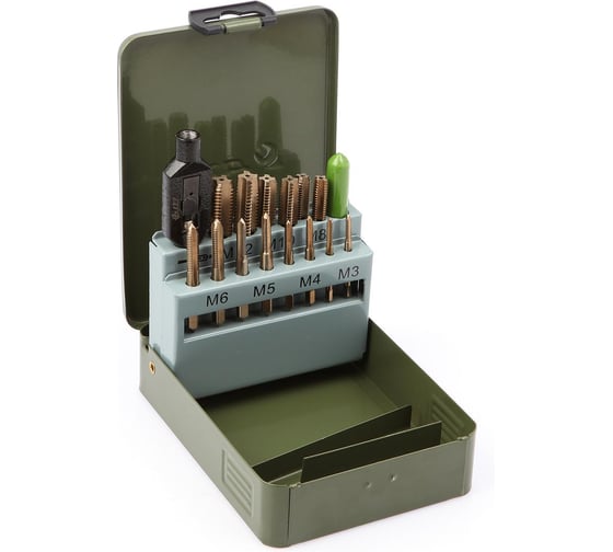 - Метчики (к-т №1, 2): М3×0.5, М4×0.7, М5×0.8, M6×1.0, М8×1.25, M10×1.5, M12×1.75