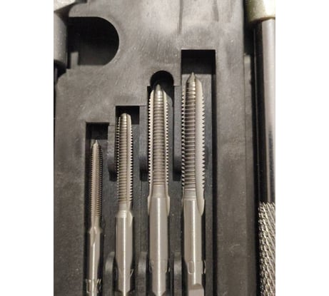Больше не ищу метчики по соседям. Теперь у меня есть любой размер, который только может пригодиться. Качество на высоте: сталь хорошо закалена, резьба нарезается легко и аккуратно. Кейс прочный, все уложено компактно и логично. Покупкой более чем доволен, главное преимущество – исчерпывающая комплектация.