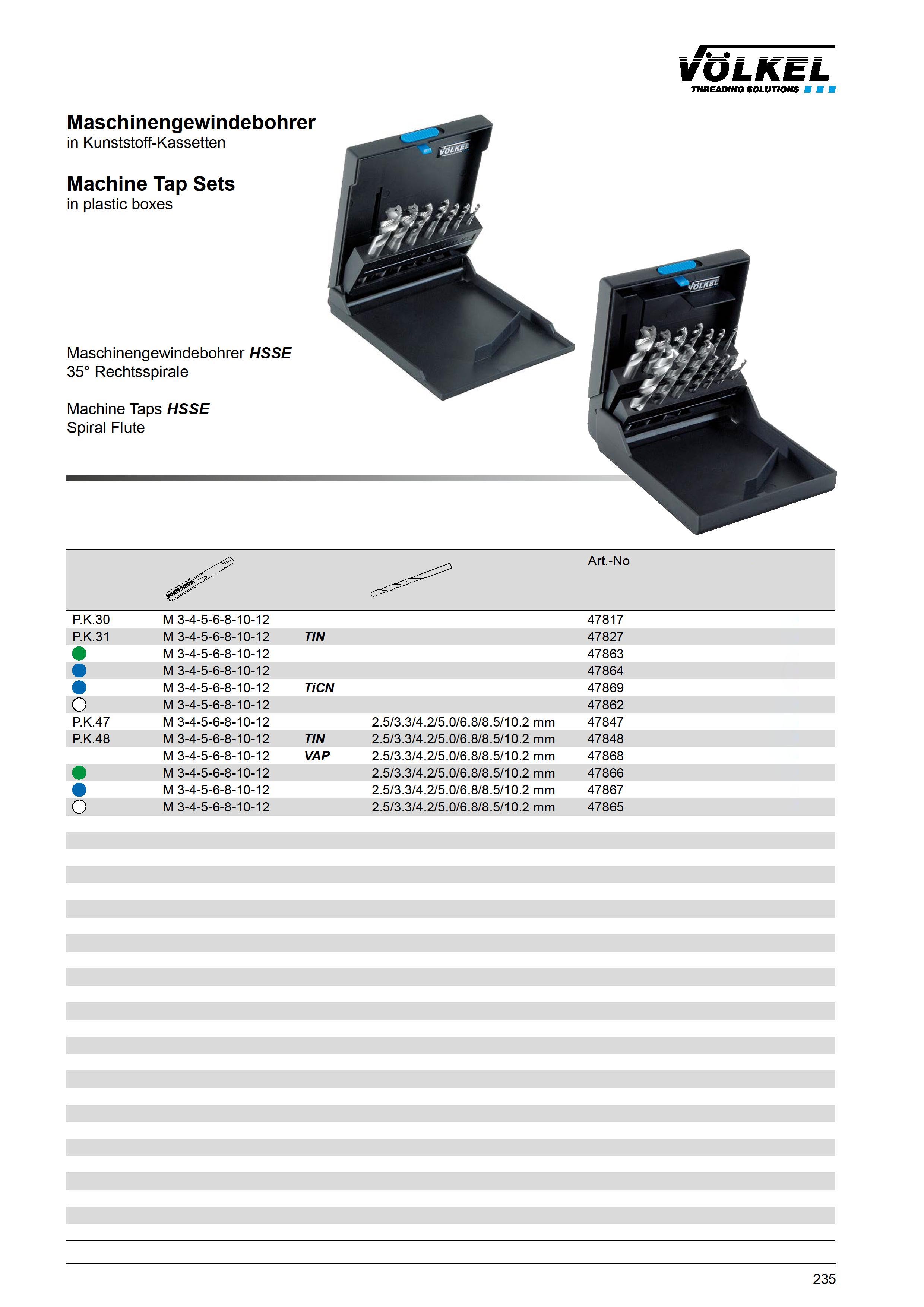 Набор машинных метчиков VOLKEL M3-M12 HSSE DIN371/376 (+ сверла) 14 предметов V47867