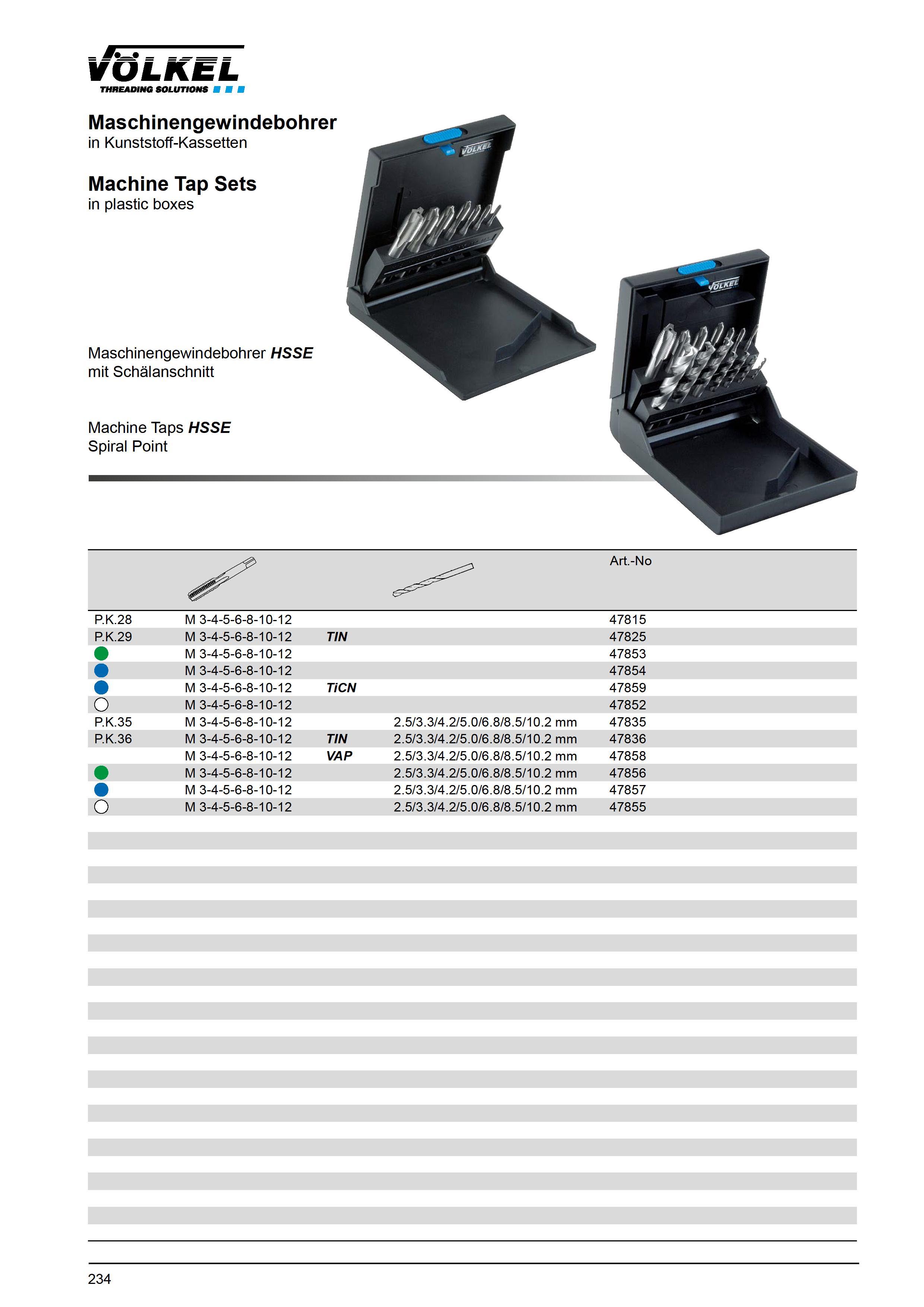 Набор машинных метчиков VOLKEL M3-M12 HSSE-VAP DIN371/376 (+ сверла) 14 предметов V47858