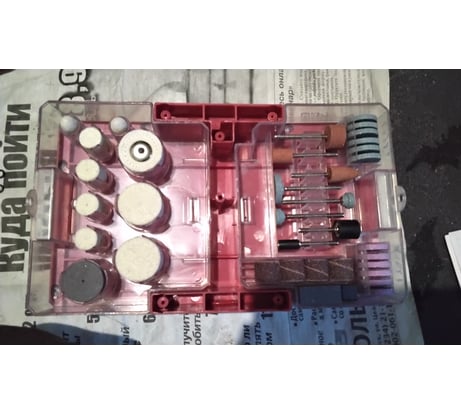 Есть Много чего из постоянной расходки и в удобном кейсе. Качество изготовления насадок гораздо ниже легендарного Дремеля, но и цена адекватна. Пользую и радуюсь. Кое что уже обновил отдельно.