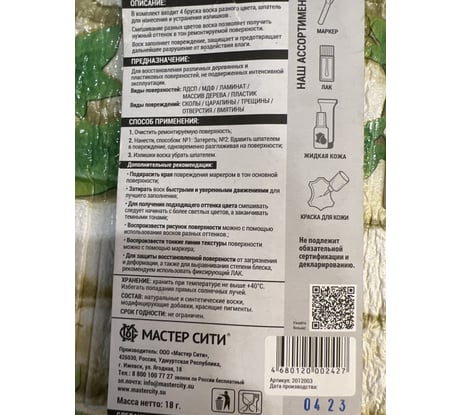 Отзывы о воске для мебели Мастер Сити 4 цвета Кремовые 2012201