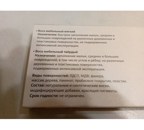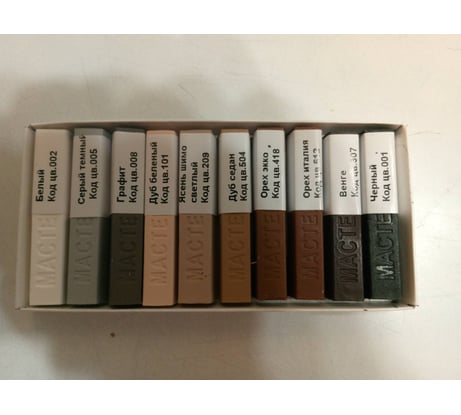 Воск мебельный (восковой мелок) в наборе из 10ти цветов от ведущего российского производителя материалов для реставрации Мастер Сити. Применяйте для ремонта сколов, выбоин и глубоких царапин. Набор УНИВЕРСАЛЬНЫЙ включает в себя десять цветов воска, идеально подходящих для смешивания. С помощью данного набора Вы сможете с легкостью создать уникальный оттенок под свою мебель. Набор идеально подойдет от повреждений на мебели после ее сборки и установки. Поможет скрыть царапины на напольных покрытиях, и убрать недочеты на дверях и окнах после ремонта. С палитрой из 10ти цветов подобрать цвет к мебели будет удобнее. Также Воски отлично смешиваются между собой. Воск для мебели (мелок) легко втирается, прочно и надолго закрепляется в повреждении, устойчив к деформации, не дает усадки и не выцветает со временем. Воск улучшает внешний вид мебели, скрывает повреждения, сливается с поверхностью, удобно применять в домашнем ремонте. В местах с высокой нагрузкой (напольные покрытия, столешницы) рекомендуем дополнительно защищать место реставрации от загрязнения и деформации Лаком быстросохнущим "Мастер Сити". Мебельный воск (восковой карандаш) для ремонта Мастер Сити полностью готов к применению. Подробную инструкцию читайте на упаковке. Обратите внимание, что экран может искажать цвет продукта.
