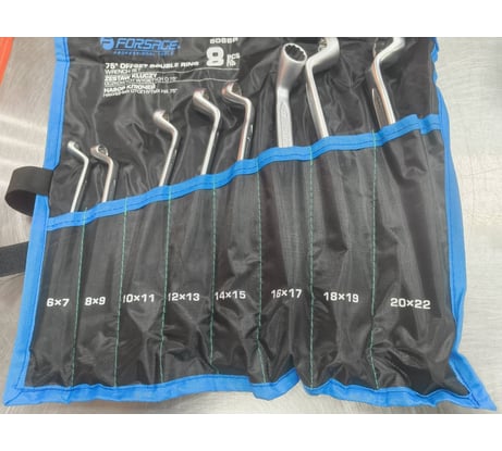 Набор накидных ключей Forsage отогнутых на 75гр.,8пр.(8x10,10x11,12x13,14x15,16x17,18x19,21x23,22x24мм),на полотне F-5088P(51191)