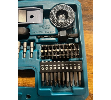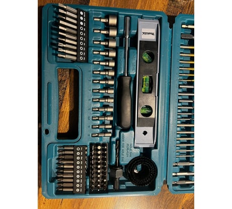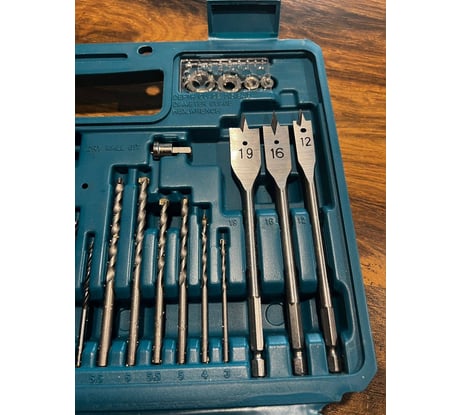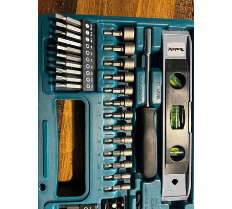 Буду первым, набор использую уже 2 месяца, без него как без рук теперь, постоянно лежит в машине потому как нужен дома, на даче, на работе, на природе, вообщем везде где я там машина, а в машине всегда все для любого случая. Обычно приобретал разовые сверла, биты и прочую оснастку сомнительного качества, те же биты уходили по 2 штуки за 1 день плодотворной работы шуруповертом с учётом правильного подбора биты к шлицу, биты в наборе Makita на любой вкус практически и все как новые несмотря на то что основной тройкой пользуюсь постоянно. Биты на 5+. Далее буду по пунктам: - Сверла, использовал по дереву и металлу, никаких претензий 5. По кирпичу ещё не пробовал так как подобные задаче выполняю перфоратором обычно. - Отвертка, рулетка, уровень поработал всем и все это в тему к данному набору качество 5. Жаль только рулетку дочка погнула немного, не досмотрел, но вроде поправимо. - Головки от 5 до 13, вообще супер, занимался переборкой забора, ремонтировал велик, снимал бампер на машине в экстренной ситуации в горах Дагестана. Если бы у меня его не было, пришлось бы либо варварским методом снимать без того побитый бампер, либо топать до аула 15 км в одну сторону. Качество отличное, твёрдая 5. - Керн мега удобная вещь которая всегда нужна хочешь купить, но всегда забываешь или забиваешь, а очень зря. - Магнитный держатель бит для шуруповерта, бита с ограничителем для глк, зенковка тут и сказать нечего качество на 5, все это использовал и ранее, но валялось то тут то там, сейчас в одном месте. - Ограничитель для сверла и трафарет изначально был уверен что абсолютно бесполезные вещи просто для красивой цифры по кол-ву позиций в наборе. Но когда собирали самодельную кухню из доски на даче друг показал как и где грамотно применить и для данной работы это было практически незаменимое решение, трафарет позже тоже пригодился т.к. глазомер у меня так себе, а тыкать в отверстие каждое сверло не удобно. - Перьевыми сверла и коронки так же были использованы при постройки кухни качество отличное, как нож в масло. - Кейс из хорошего мягкого пластика, но есть но.