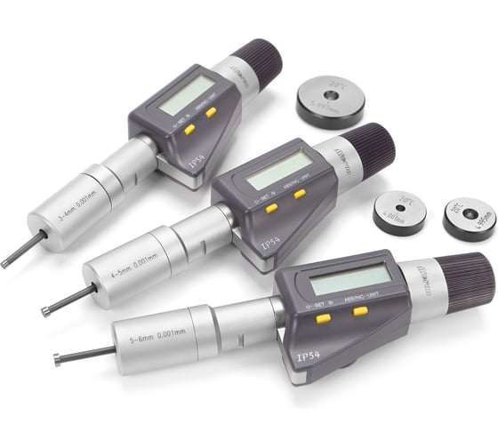 Набор нутромеров цанговых цифровых Micron НМ-СЦ 3-6 мм 0,001 с установочными кольцами IP54 73453