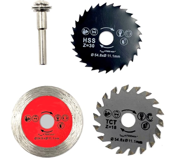 - 3 отрезных мини-диска из быстрорежущей стали (HSS) различных диаметров (