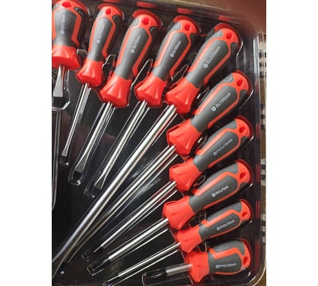 Набор отвёрток предназначен для работ с крепежом. Сочетание твёрдых и мягких элементов рукоятки оптимально распределяет усилие, прилагаемое к инструменту, и предотвращает проскальзывание. Эргономичный дизайн облегчает работу. Отвёртки удобно подвешиваются за специальное отверстие. Лезвие отвёрток изготовлено из хром-ванадиевой стали, жало подвержено индукционной закалке и фосфатировано.