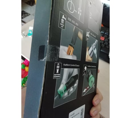 Внешний вид коробки на фото очень сильно отличается от реальной. Нет никакой защитной пленки, заклеено скотчем-очень странно(( Да и вообще как будто пользовались, а потом решили продать, сами отвертки запыленные, потому что ничем не прикрытые