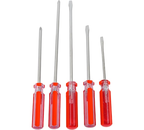 Набор отверток 5 штук Top Tools 39D105 применяется с крепежом, который обладает прямым или крестообразным шлицем. Двухкомпонентные рукоятки эргономичной формы не скользят в руке. Стержни инструментов изготовлены из высококачественного металла, который отличается прочностью и устойчивостью к влиянию коррозии.